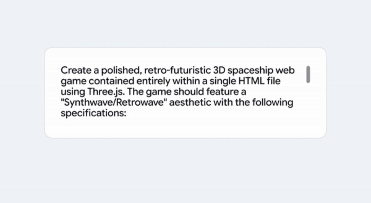 在 2.5 Pro 成功的基础上,Gemini 3 兑现了将开发者的任何想法变为现实的承诺。它在零样本生成方面表现出色,能够处理复杂的提示和指令,从而渲染出更丰富、更具交互性的 Web 用户界面。