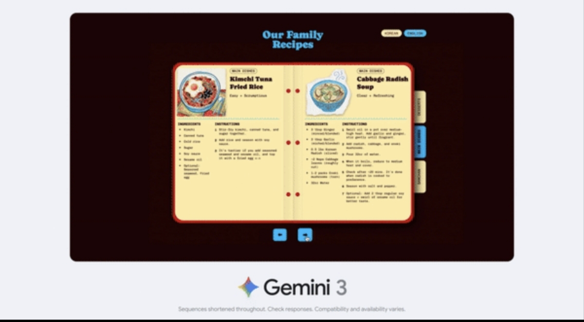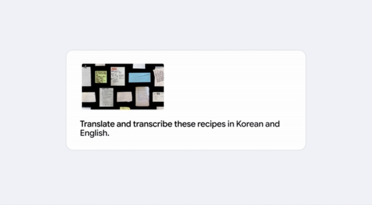 例如,如果你想学习如何烹饪家族传统菜肴,Gemini 3 可以解读并翻译不同语言的手写食谱,生成可与家人分享的食谱。