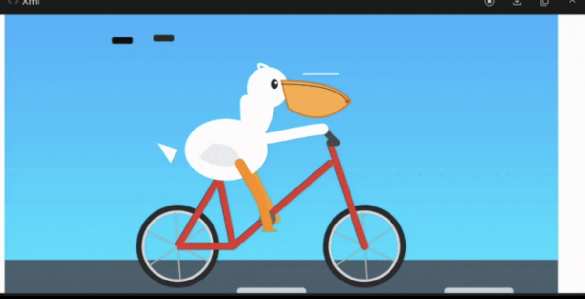 我们又换了一个更为清晰的提示词:Create a single, complete, self-contained animated SVG code (no external files or images) of a cute pelican riding a bicycle from a side view. 这次 Gemini 3 生成的自行车似乎没有脚蹬。