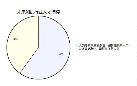 行业已出现积极信号:头部企业的测试团队规模未因AI应用而缩减,而是重组为更具技术含量的质量工程团队,测试人员在产品决策中的话语权显著提升。这表明,技术的本质在于赋能而非替代,关键在于从业者能否主动拥抱变革,在AI驱动的技术浪潮中找到新的价值支点。以下用饼图展示未来测试行业人才结构的变化趋势: