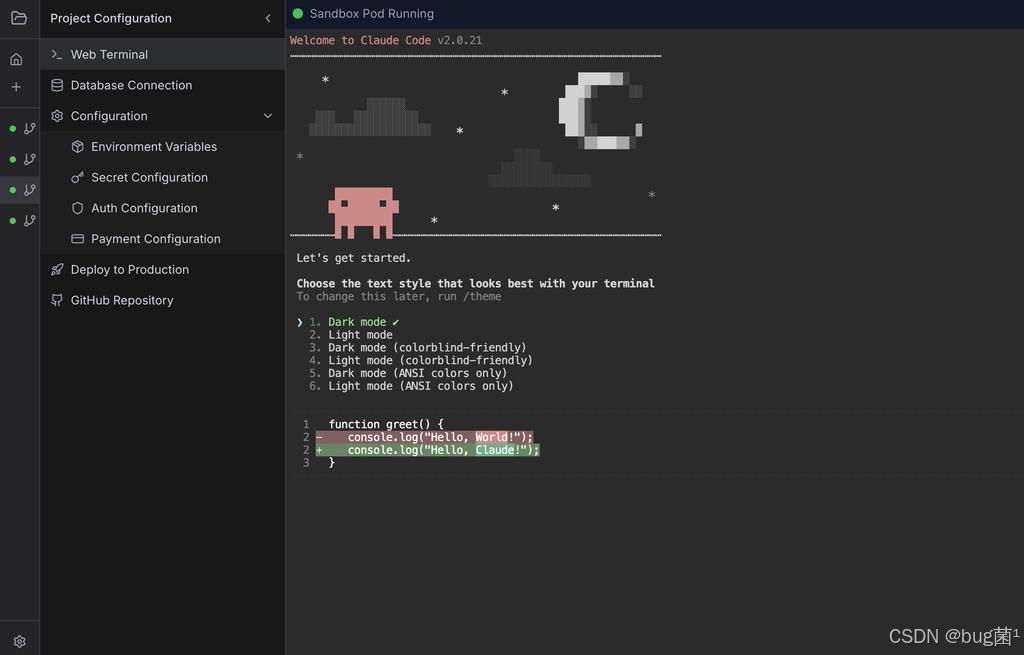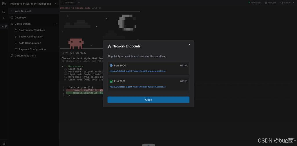 一进去给我惊艳住了,什么都不用干,直接可以开始用 claude code 了,域名都给我弄好了: