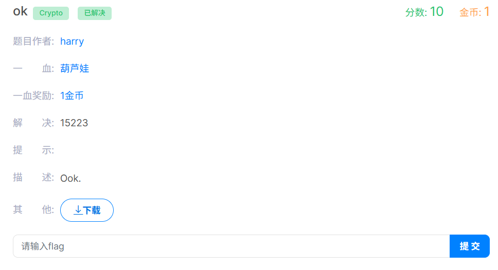 看到提示ook,想到Ook.加密,使用在线工具解密