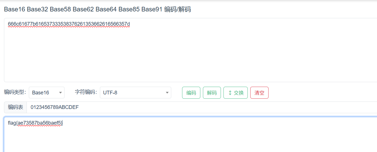 但是字符是4的倍数,开始猜应该是base加密了,然后全是数字和小写,没有大写,猜测要么base16,要么base32,因为只有bcd这些比较前面的字母,大概率是base16
