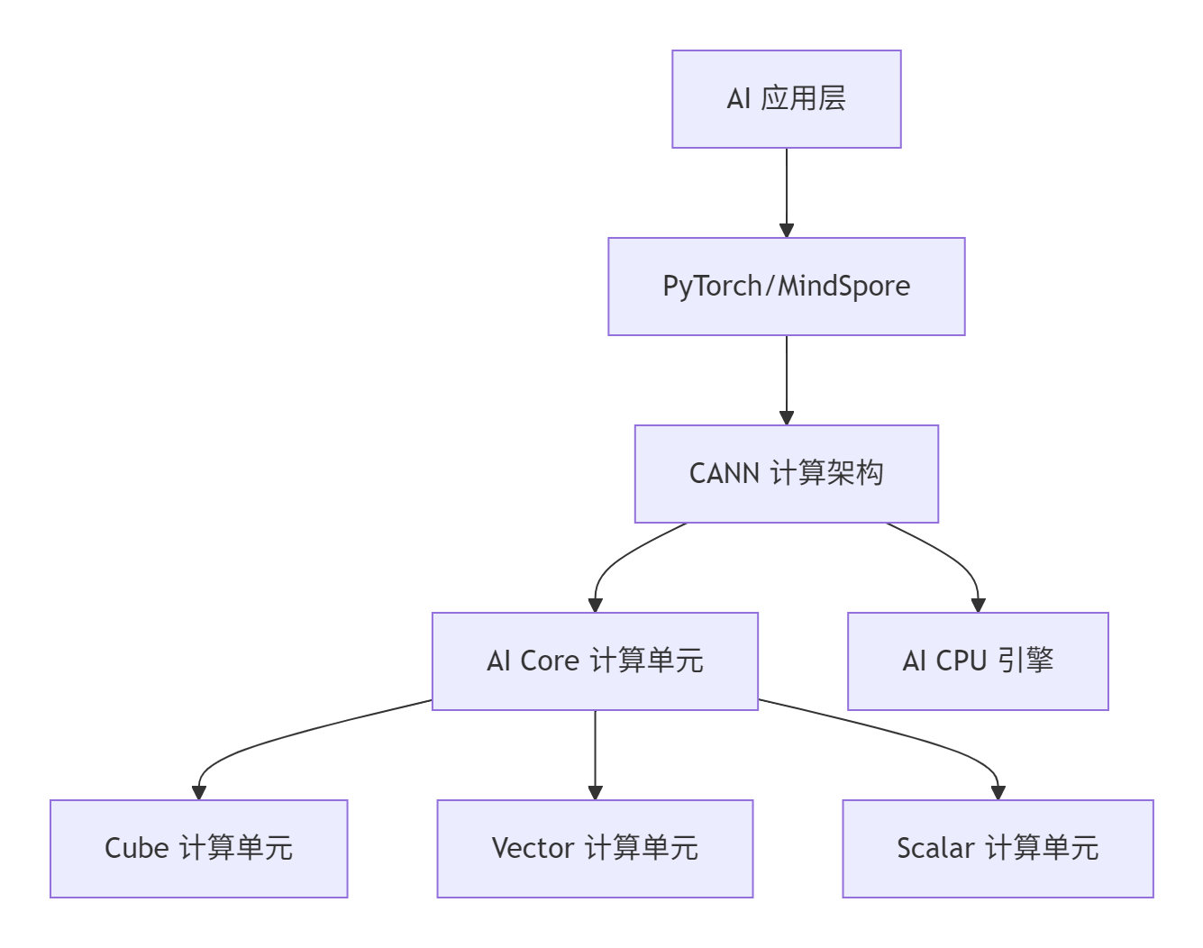 昇腾 AI 处理器采用创新的达芬奇架构,其核心计算单元 AI Core 专为神经网络计算优化。每个 AI Core 包含三个关键计算单元: