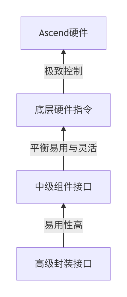 Ascend C通过多层级API设计,平衡了易用性与灵活性。