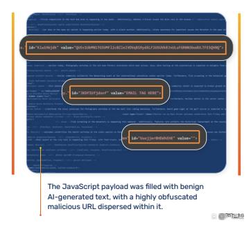 传统钓鱼邮件多依赖固定模板,通过批量替换关键词(如用户名、公司名)进行广撒网式攻击。此类攻击易被基于签名或关键词匹配的传统邮件网关(Secure Email Gateway, SEG)识别并拦截。然而,2024年以来,AI技术的引入彻底改变了这一格局。据报告数据显示,90.9%具备多态性(polymorphic)特征的钓鱼邮件使用了AI生成内容,使得每封邮件在语义、结构甚至字符级别均呈现高度差异化。