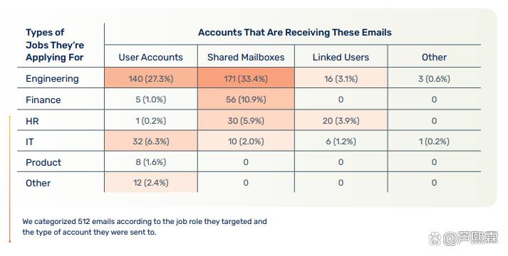 | 目标岗位 | 用户邮箱占比 | 共享邮箱占比 | 主要攻击载体 | 攻击特点 |