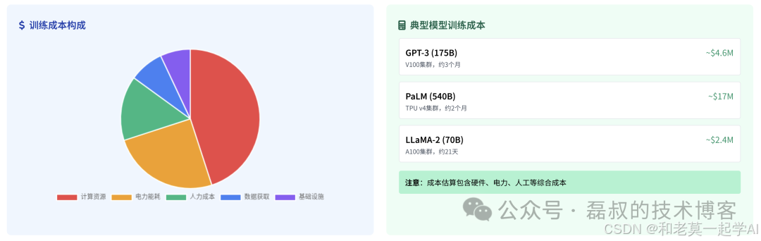 - • 成本的主要构成:训练成本占据了LLM开发总成本的70%以上