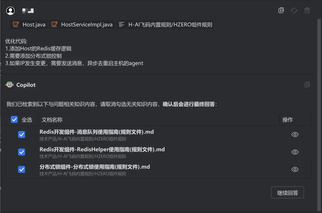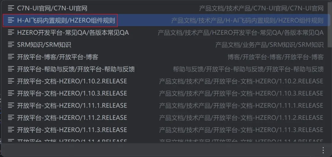 ◈ 同步上线H-ZERO内置知识库【HZERO组件规则】:其中包含29个开箱即用、高质量H-ZERO规则文件,覆盖H-ZERO核心开发包、Redis开发组件、平台各种服务客户端等关键场景。结合@KMS-Docs智能匹配与知识融合,让代码生成更高效、更可靠