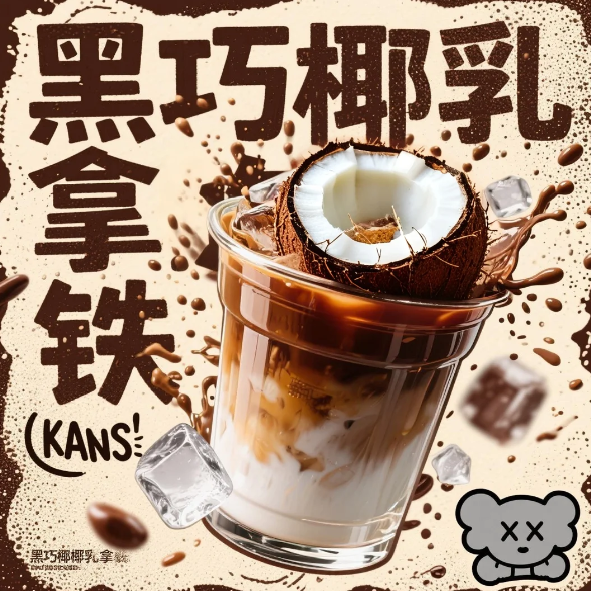 在即梦 AI 里,我只需把第一张焦糖玛奇朵海报导入 “无限画布”,输入中文指令:“延续当前 ins 风,生成热可可、姜饼拿铁新品海报,热可可版用奶白 + 深棕主调,搭配棉花糖元素;姜饼拿铁版用奶白 + 姜黄主调,搭配姜饼人元素,保持文字排版逻辑一致”。