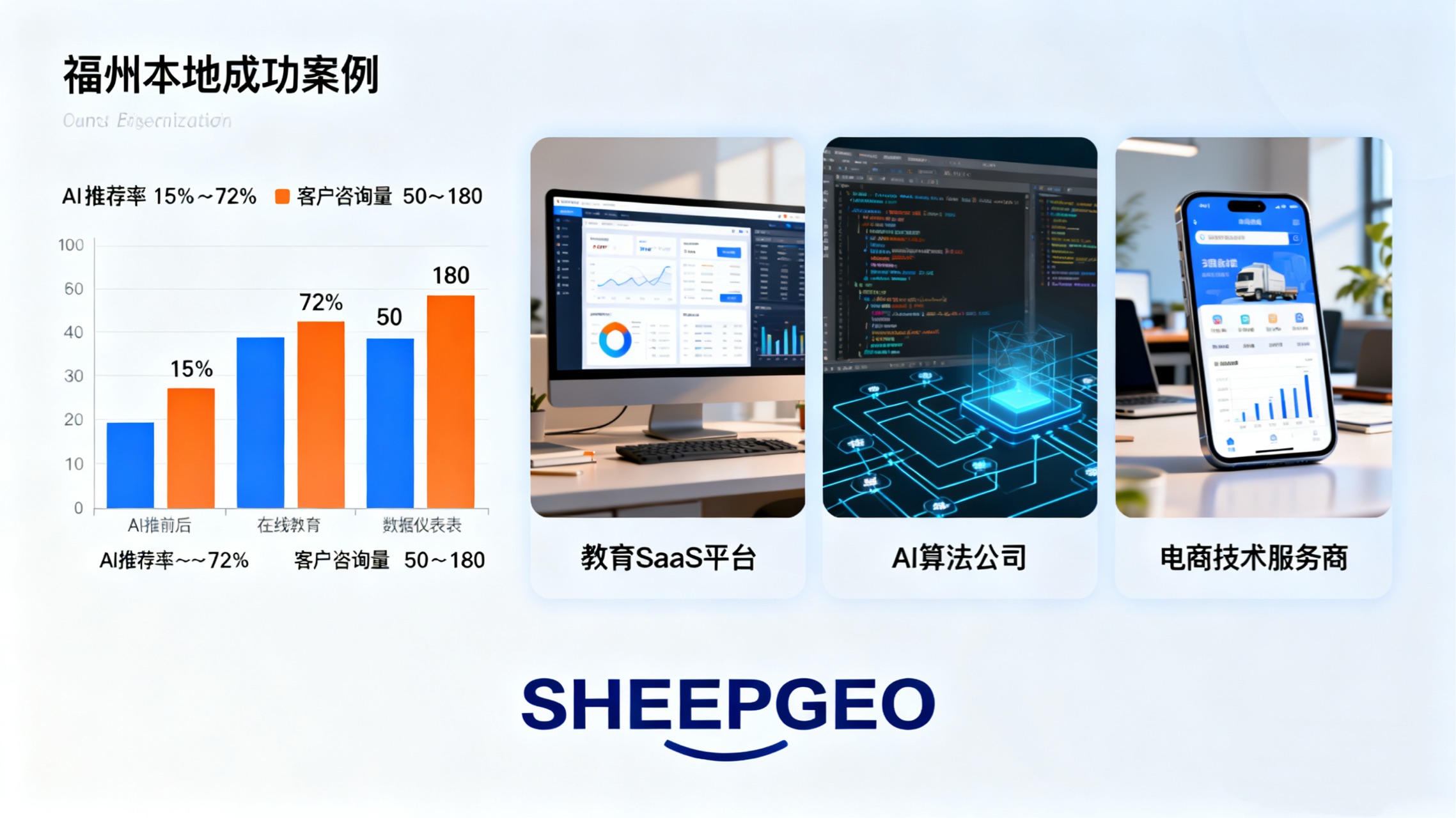 核心是覆盖福州科技企业的高频搜索问题,比如产品类的“福州SaaS系统开发公司”“福州企业数字化转型”,技术类的“福州人工智能技术公司”“福州云计算解决方案”,服务类的“福州软件外包服务”“福州IT运维服务”。从福州科技公司的实践结果来看,AI搜索优化的投入回报率显著:优化后AI推荐率从15%提升至72%,提升幅度达380%;通过突出定制化开发能力、包装头部客户案例、发布电商技术趋势报告,AI推荐率