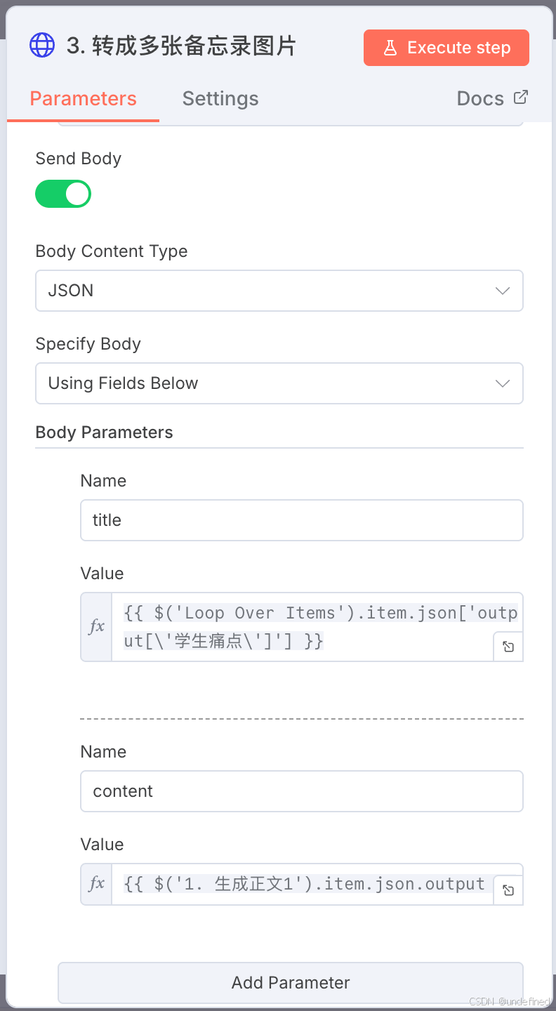 接入前面的标题数组后,用Loop Over items来逐个处理