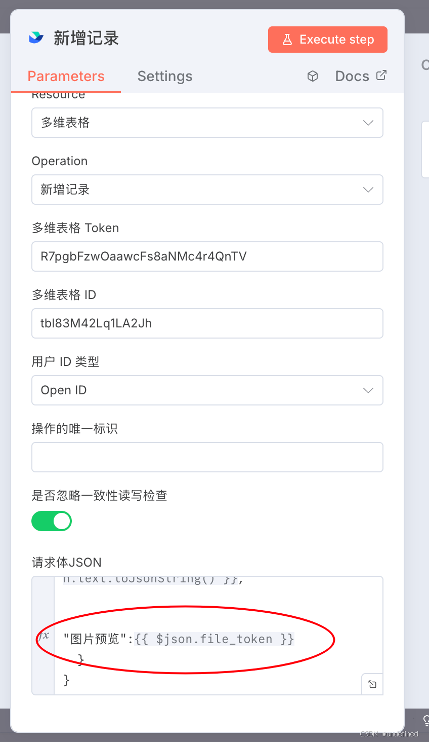 然后通过Code把file_token改装成{"file_token":xxx}的形式,重新放到一个数组里