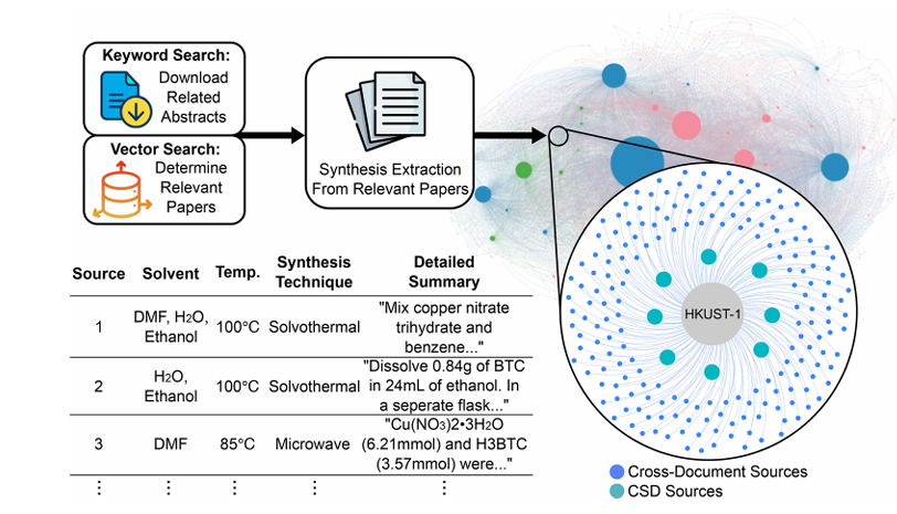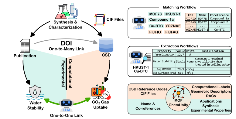 这项工作的主要目标是开发一个框架,将来自庞大MOF文献的知识提炼成统一的、结构化的、机器可读的格式,并将其与晶体结构和计算数据连接起来,使科学家和AI系统都能够利用MOF知识的全部广度。
