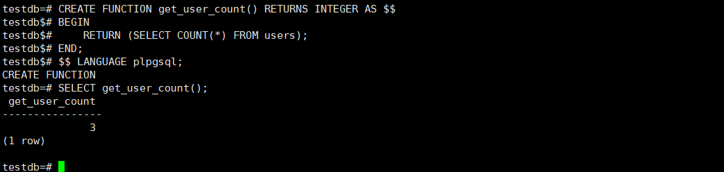 CREATE FUNCTION get_user_count() RETURNS INTEGER AS $$