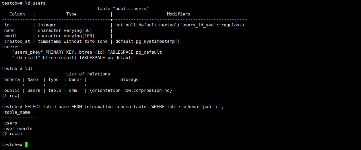 SELECT table_name FROM information_schema.tables WHERE table_schema='public';