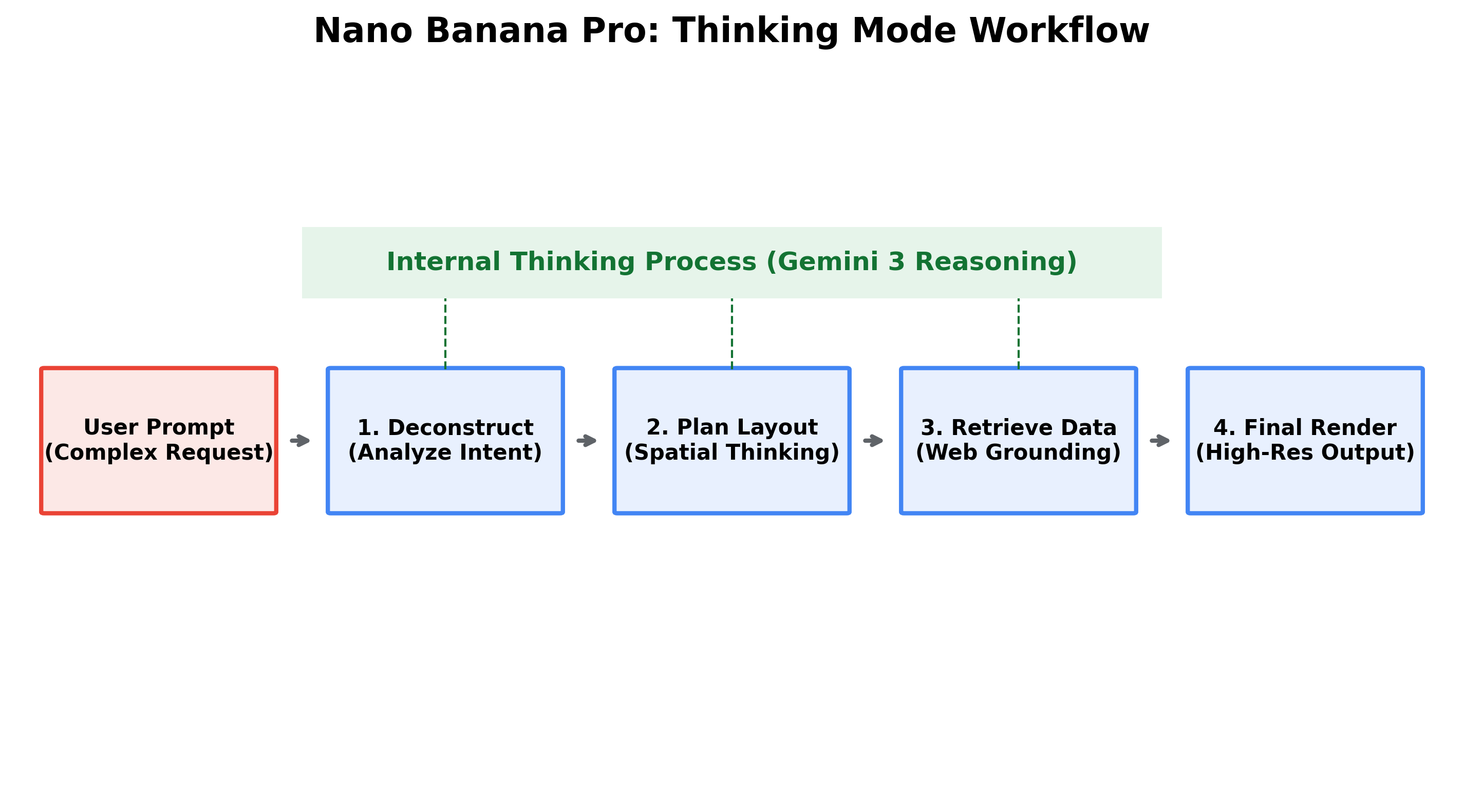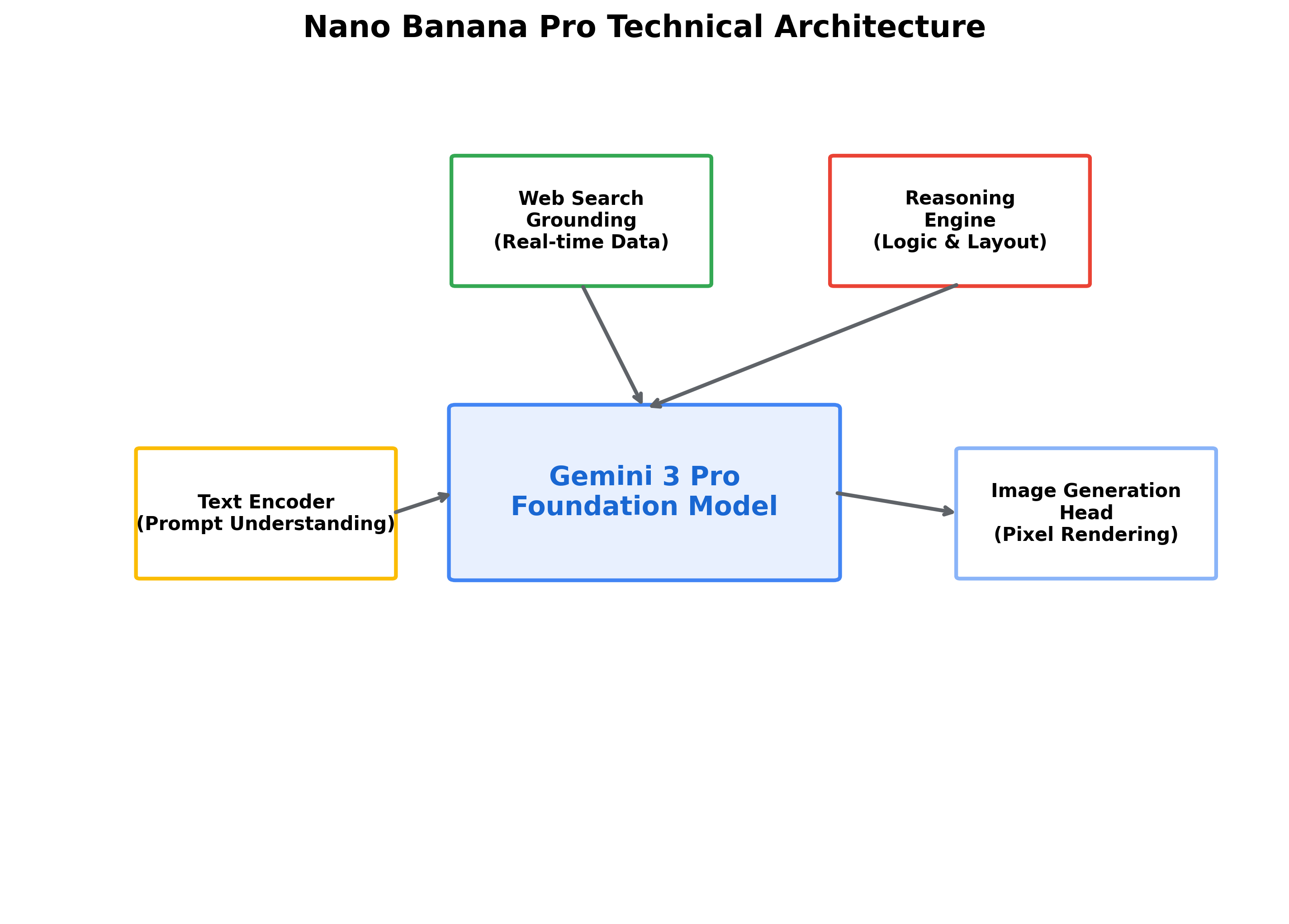 从上面这张架构图可以看出,Nano Banana Pro 的核心不仅仅是底层的渲染引擎(Image Generation Head),更重要的是左上角那个 Reasoning Engine(推理引擎) 和 Web Search Grounding(实时联网)。