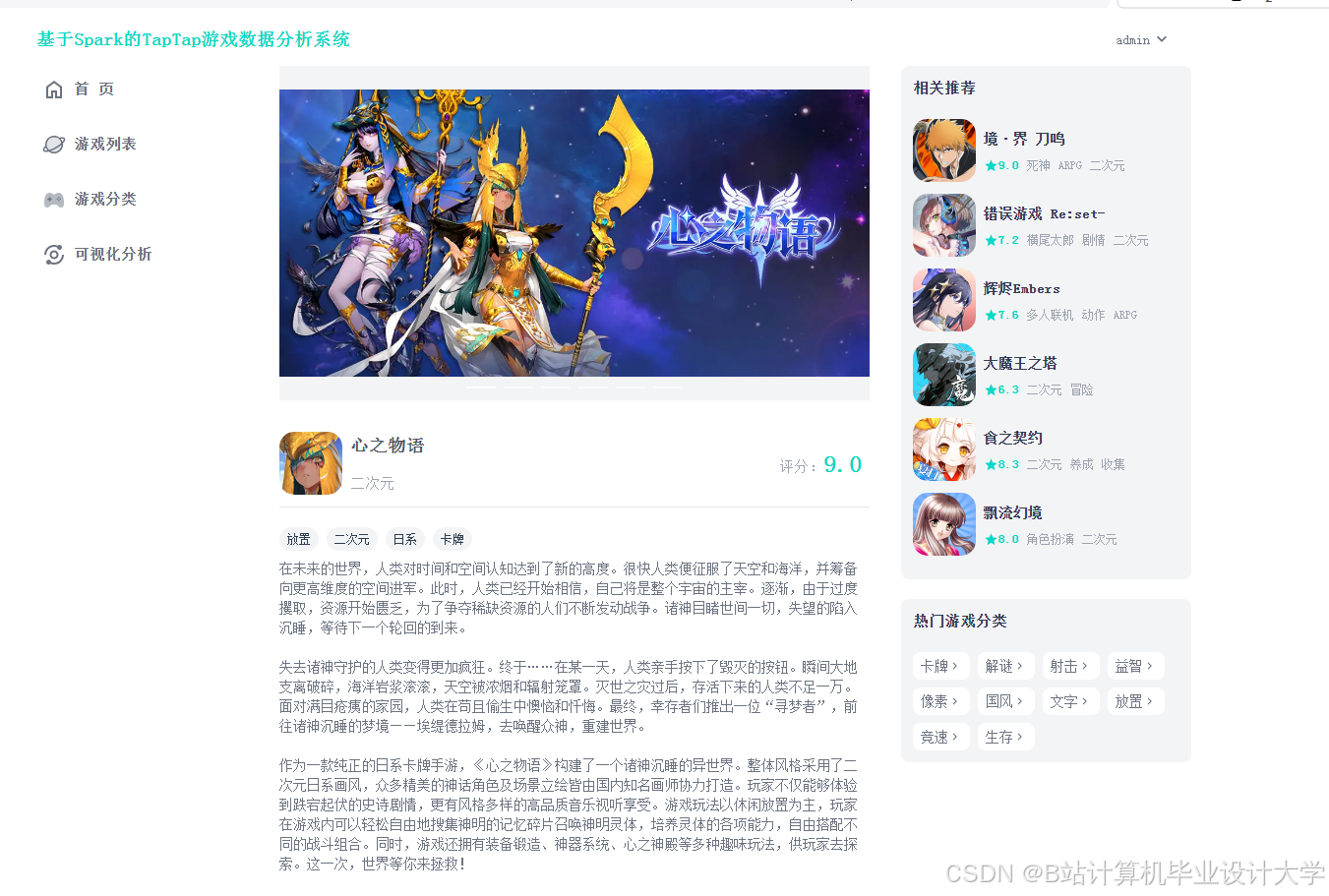 - 前端交互:通过Streamlit或Vue.js实现可视化推荐界面,支持游戏筛选、推荐结果解释(如“因您喜欢开放世界游戏推荐《塞尔达传说》”);