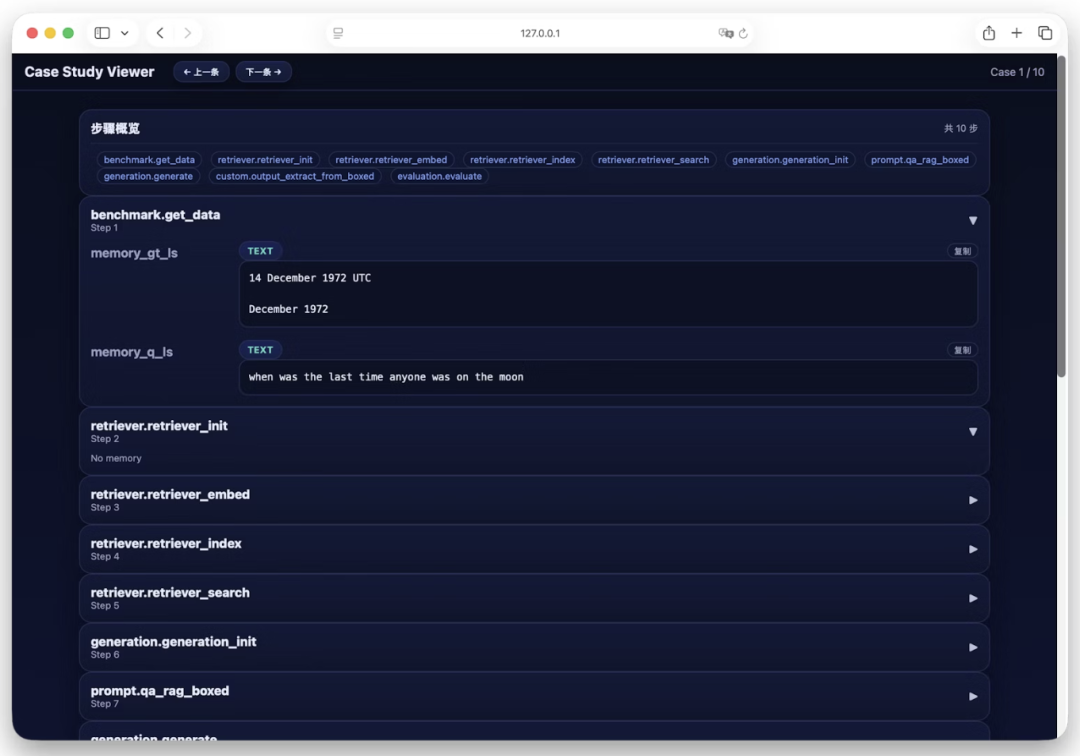 而且开源项目内置了 Case Study Viewer 界面,可以对结果进行交互式浏览与分析。 就是下面这样的界面。