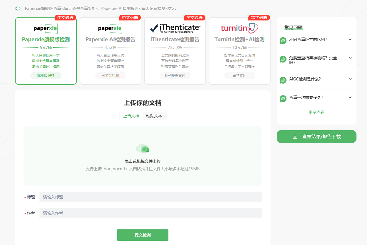 paperxie免费查重:中文查重复率,aigc检测,turnitin,iThenticate查重