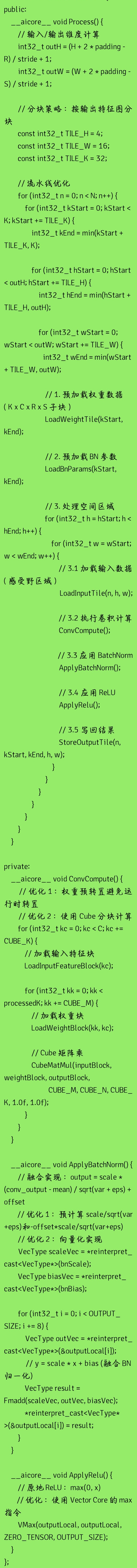 在ResNet等CV模型中,卷积后通常紧跟BatchNorm和ReLU操作。三者融合可大幅减少内存访问: