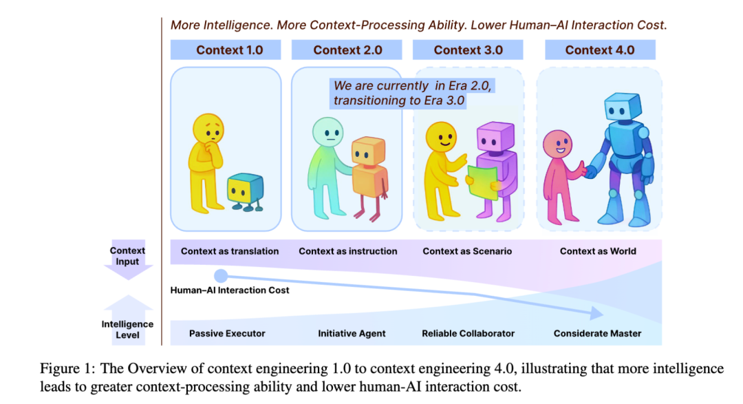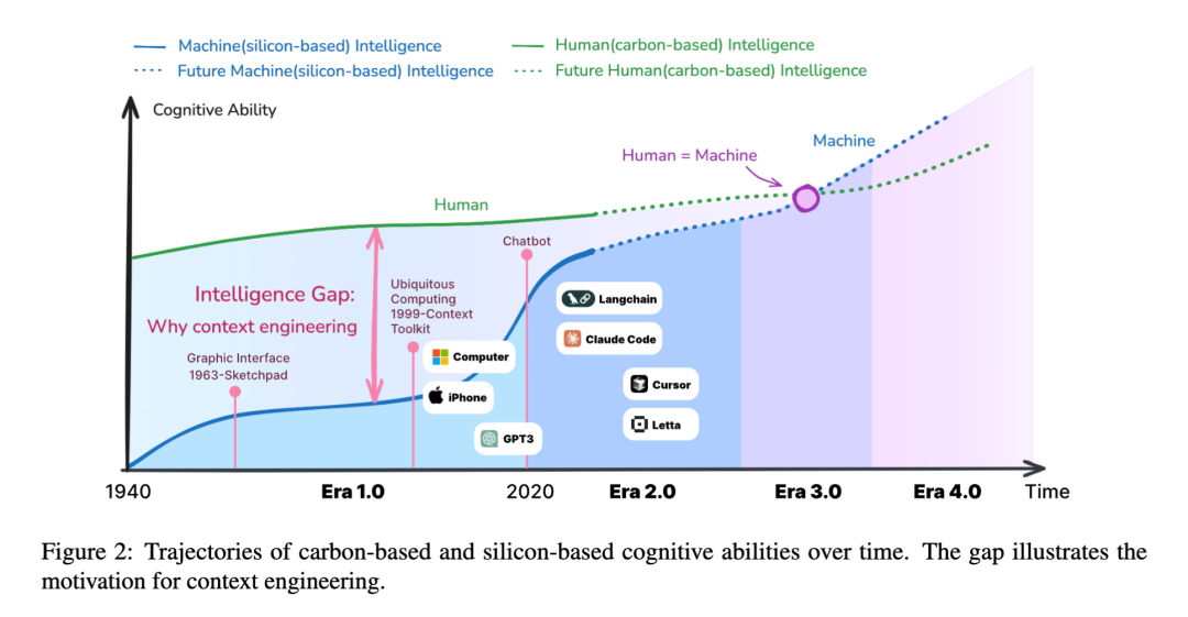 论文开篇就提出了一个颠覆性的观点:上下文工程并非新生事物,而是伴随机器智能水平发展而不断演进的学科。