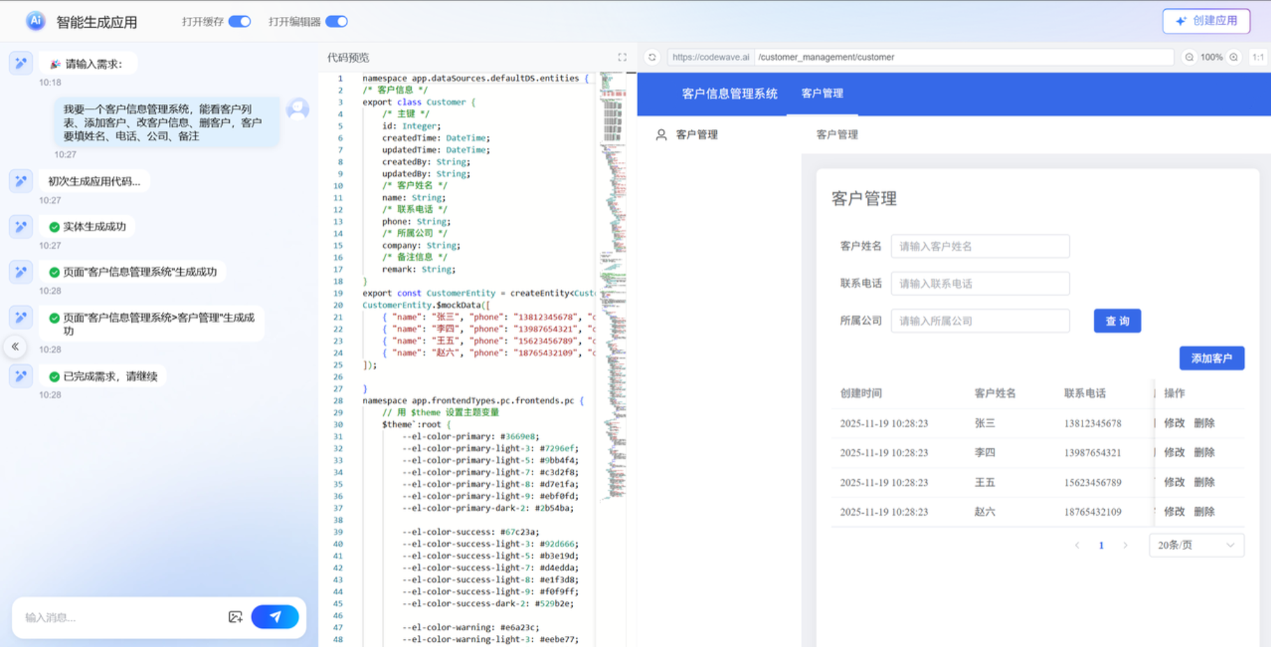 这里等待了大约一分钟,就生成一个简约、精准的客户信息管理系统,非常的快