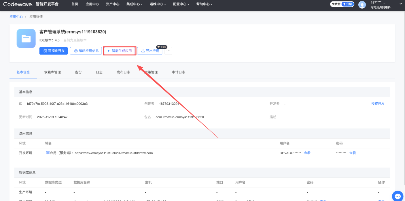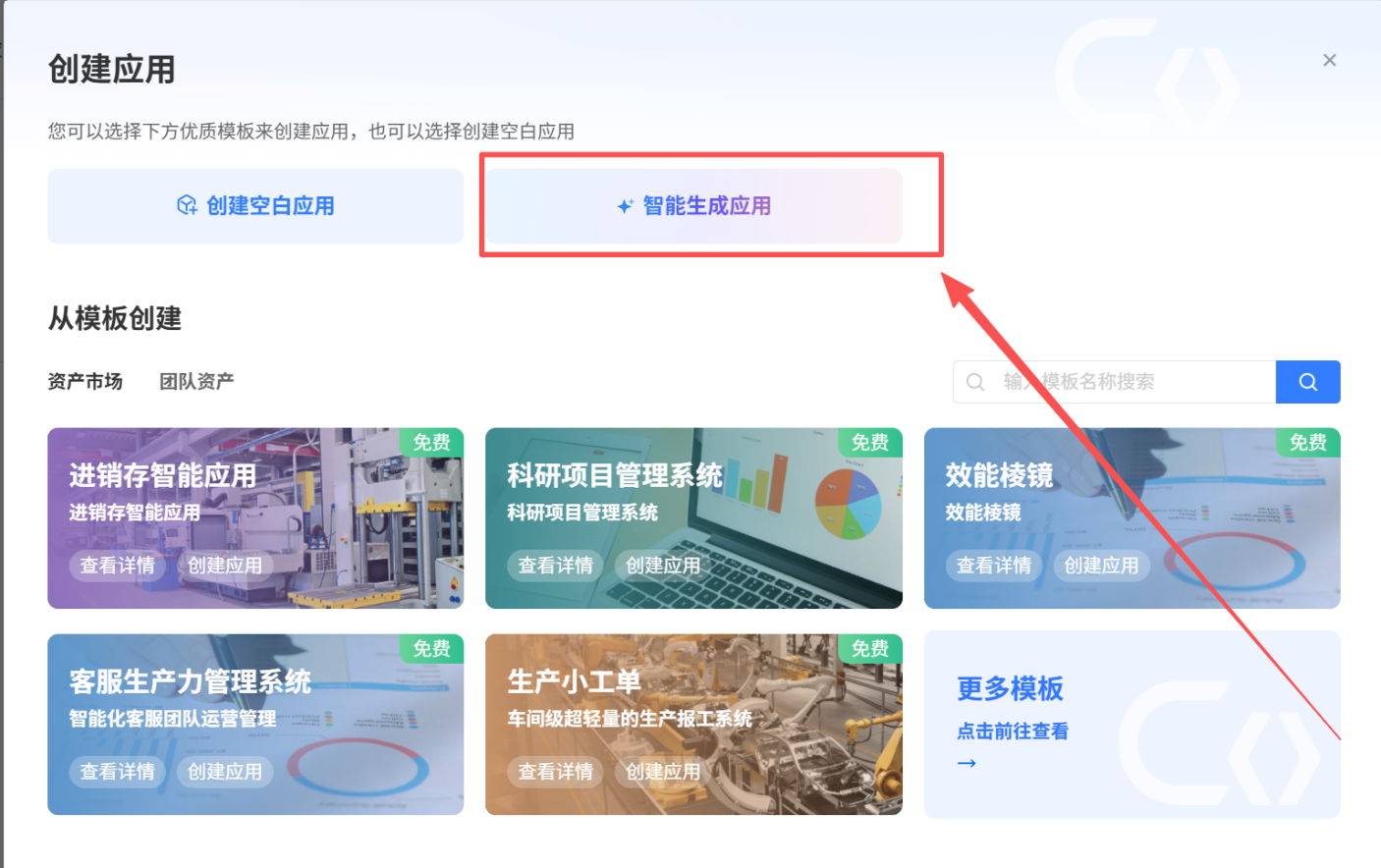 登录后,点右上角的 “创建应用”—— 如果能看到 “智能生成应用” 这个选项。
