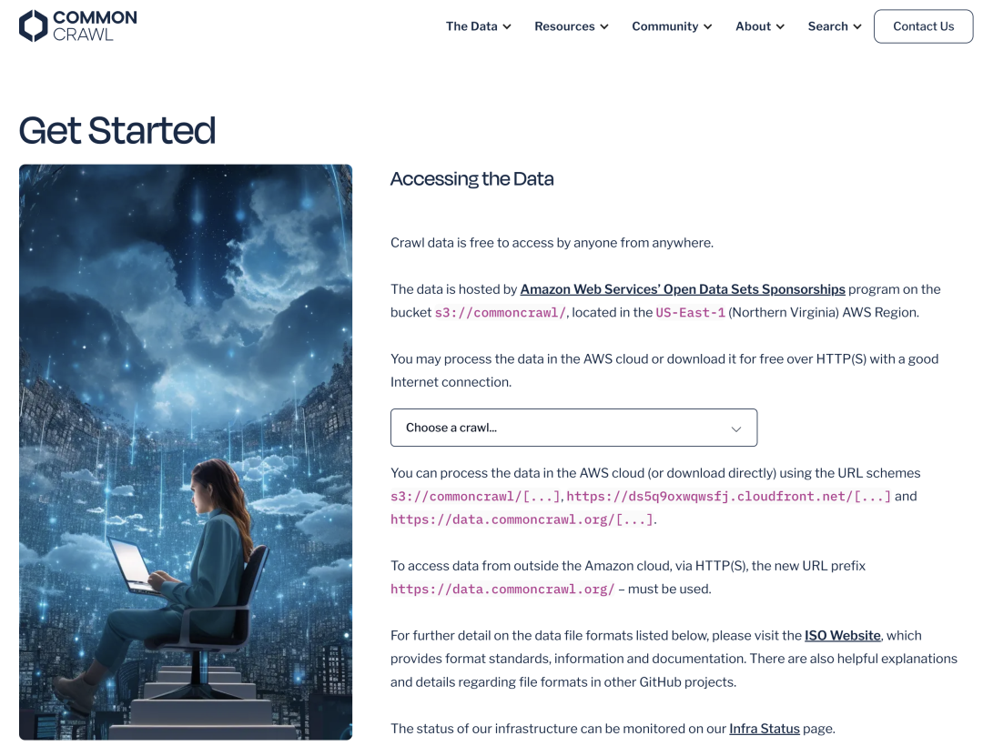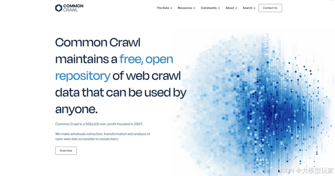 Common Crawl (CC) 语料库是最大且常用的资源之一。它通过大规模网络爬取操作收集,代表了公共网络很大一部分的快照。Common Crawl 公开提供数PB的原始网页数据、元数据和提取的文本,通常每隔一两个月发布新的爬取数据集。
