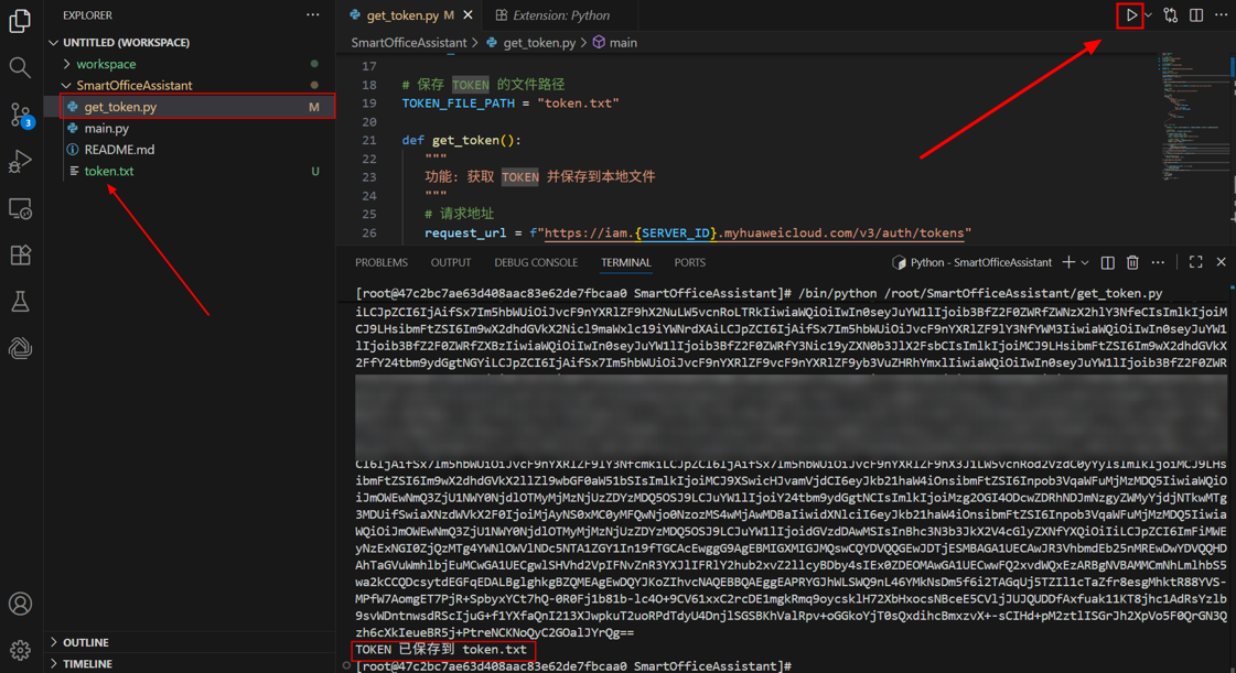 点击右上角运行按钮,运行get_token.py文件。