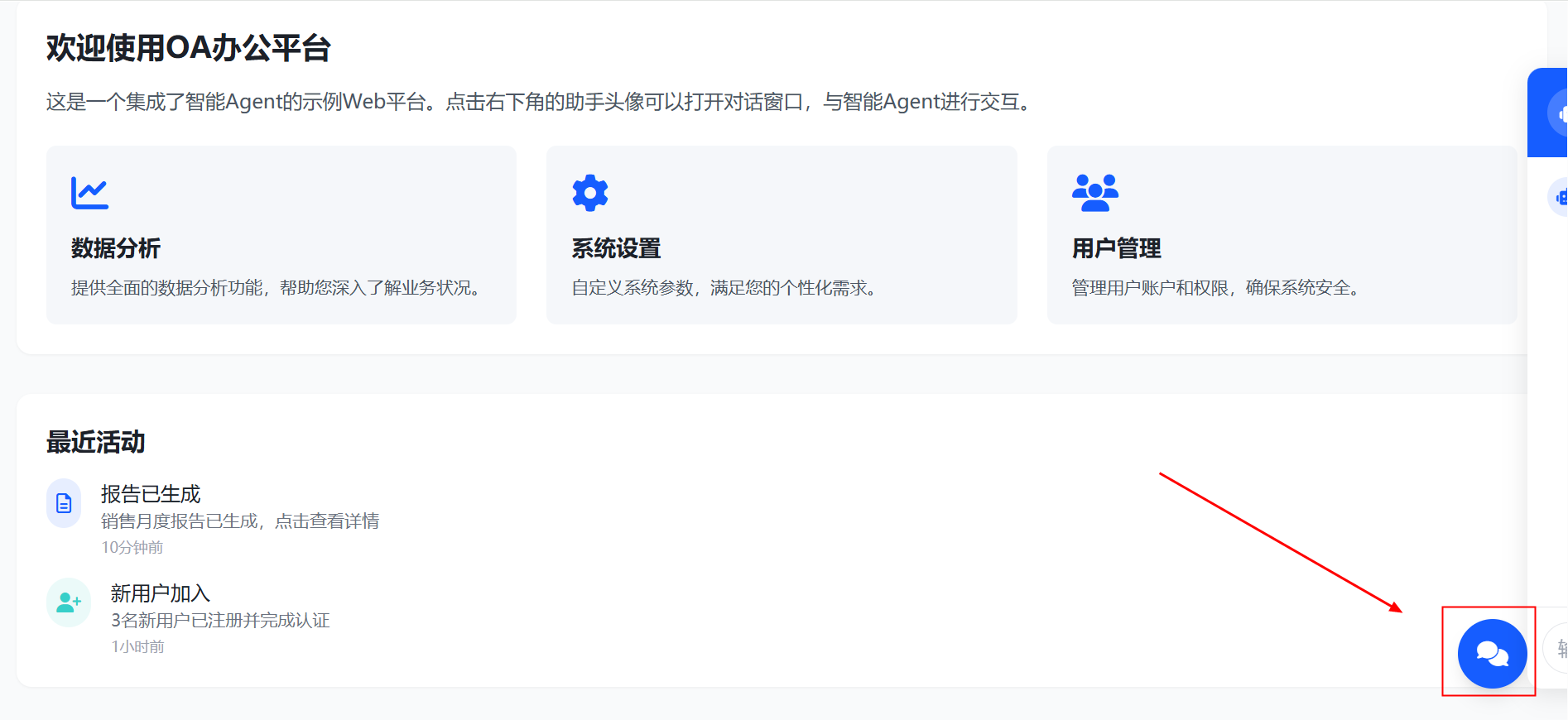 - 使用浏览器测试并体验智能办公助手。