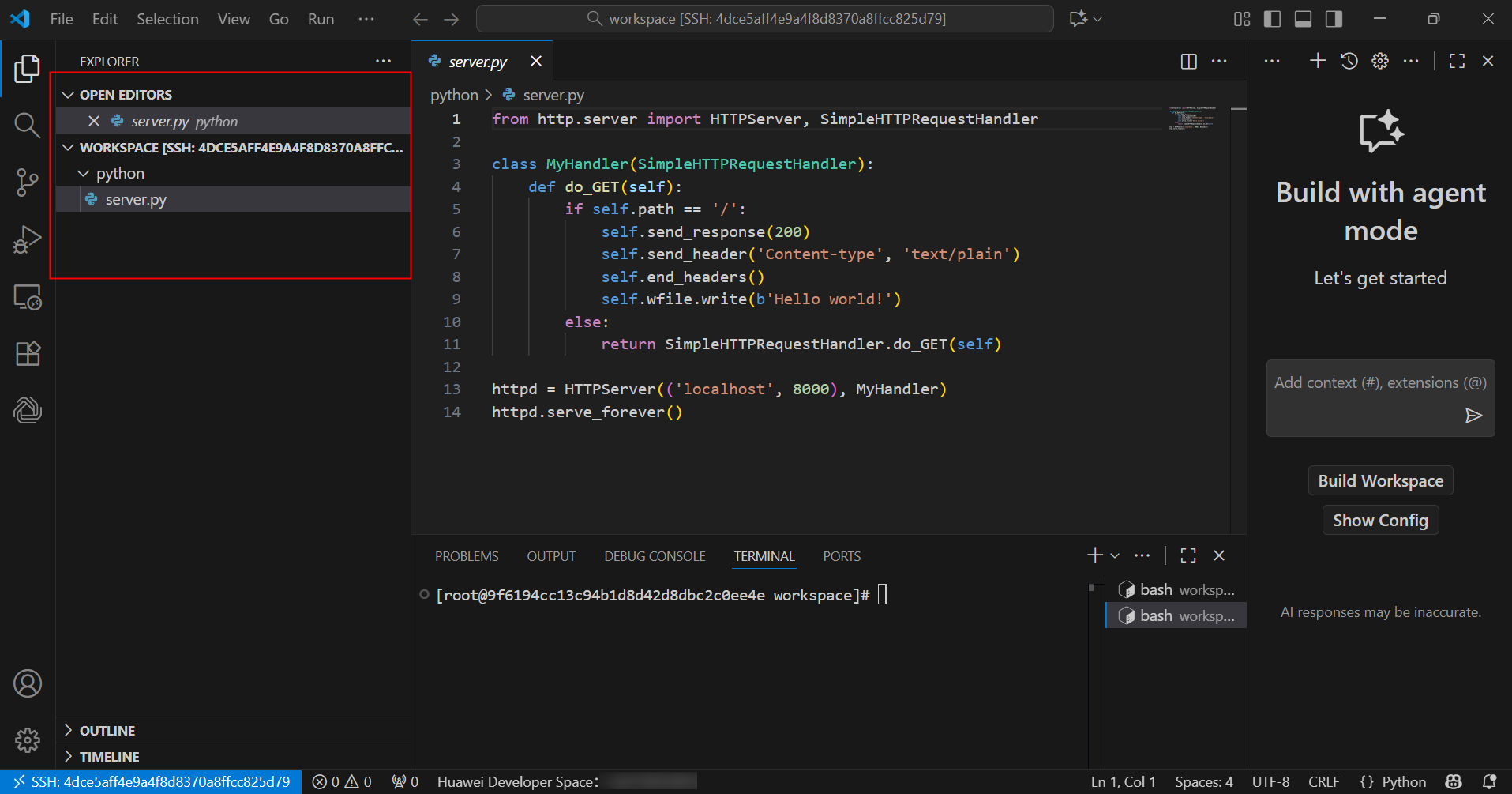 基于华为开发者空间-云开发环境(容器)+ Versatile Agent,构建AI轻量级智能办公助手