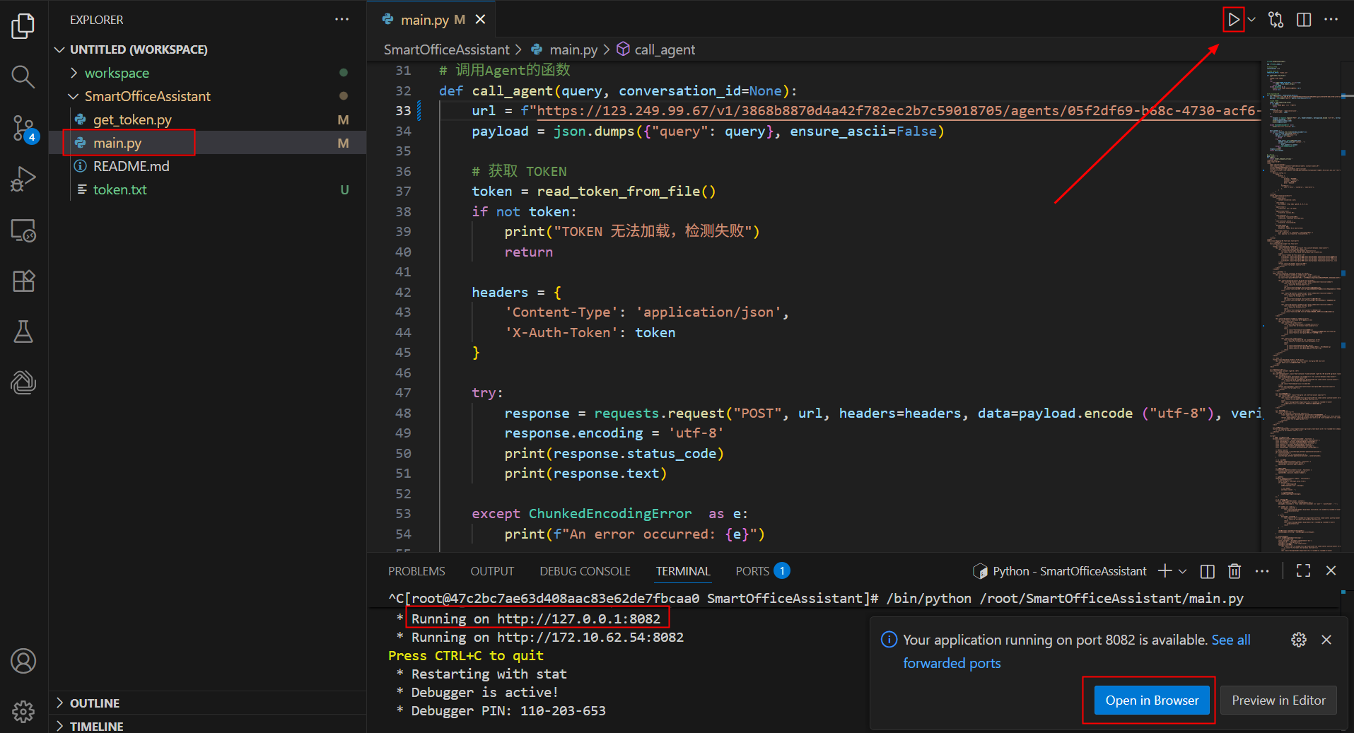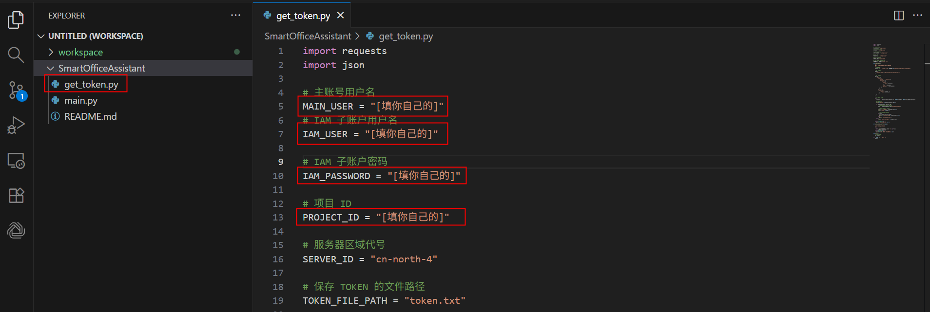 在SmartOfficeAssistant文件夹下,查看编辑get_token.py文件。