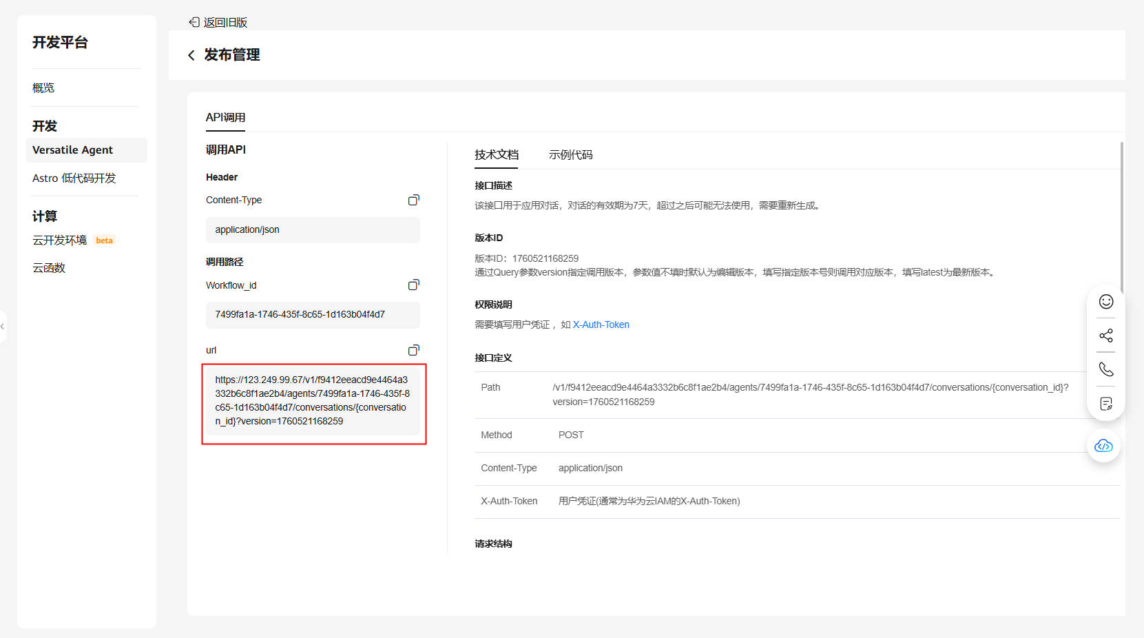 发布完成之后,记录调用API的url,留作后面步骤使用。