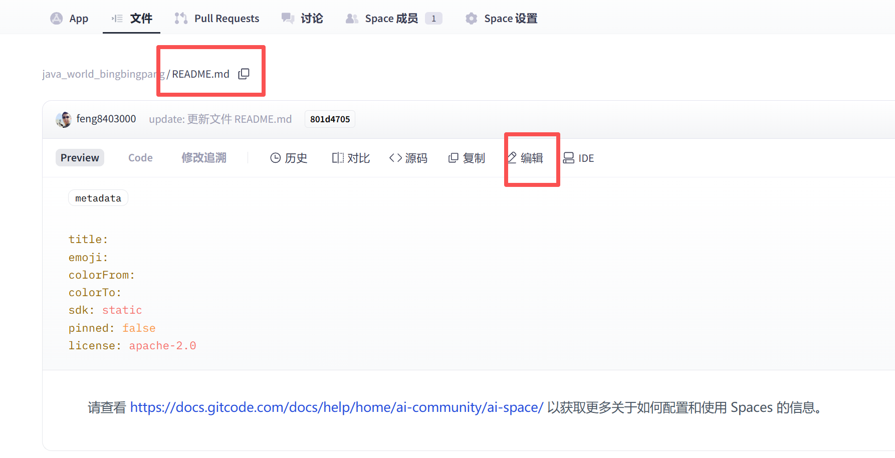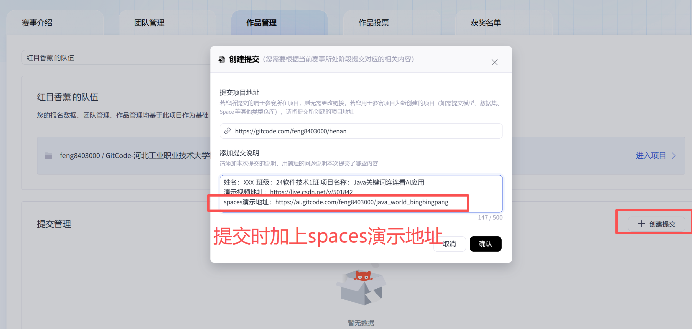 4、提交的时候同事提交spaces地址