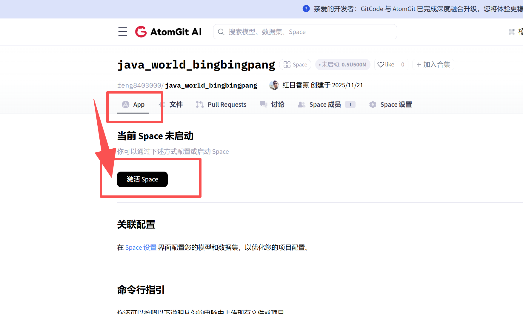 在上篇文章种我们已经有了项目,接下来我们可以通过space来运行这个项目。