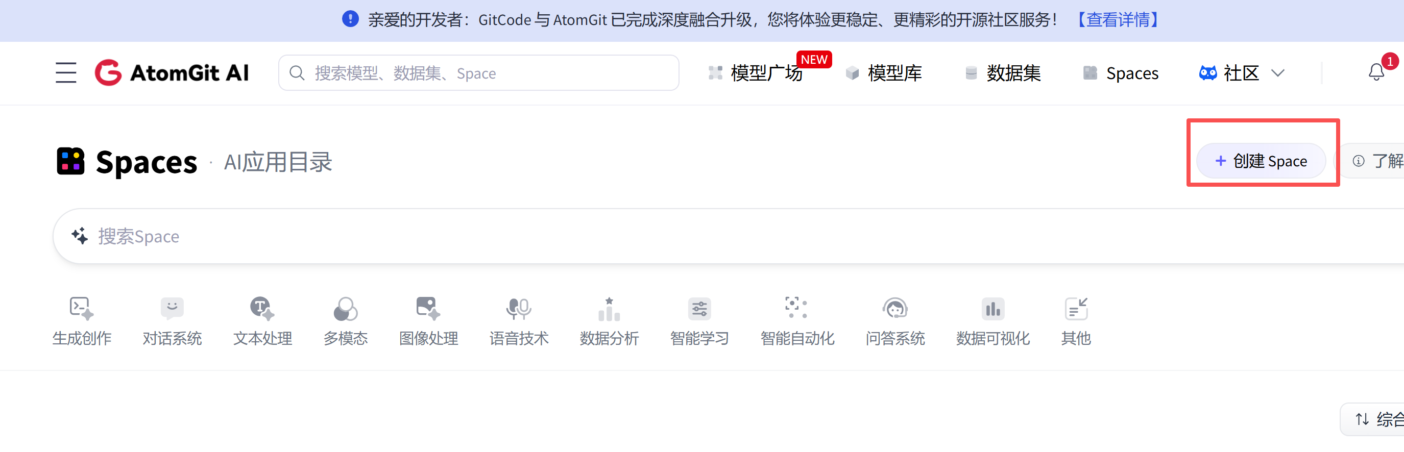 点击创建spaces