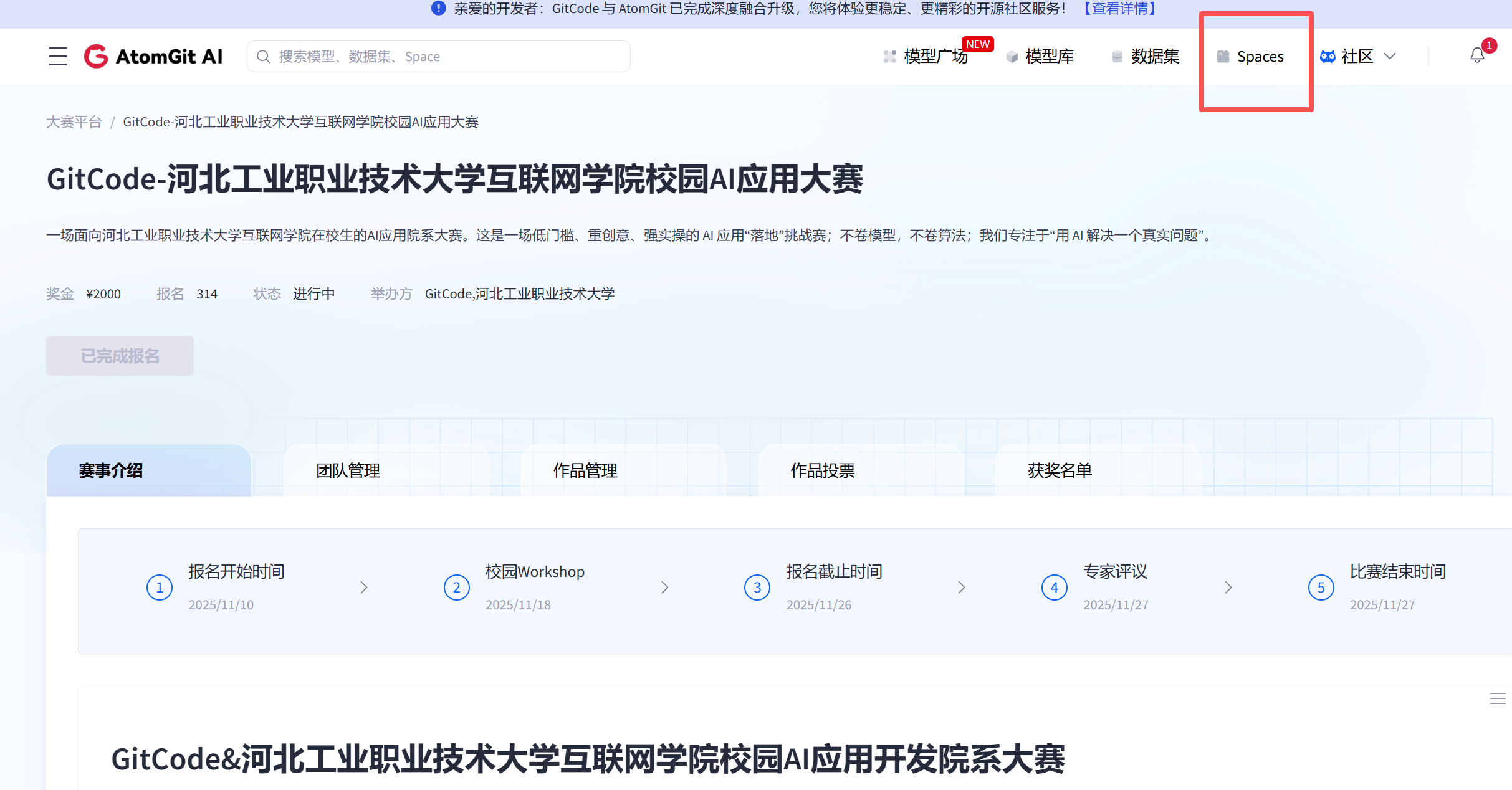 到这里,我们就成功的搞定了我们的spaces项目与提交作品了,恭喜,等待出结果就行了。