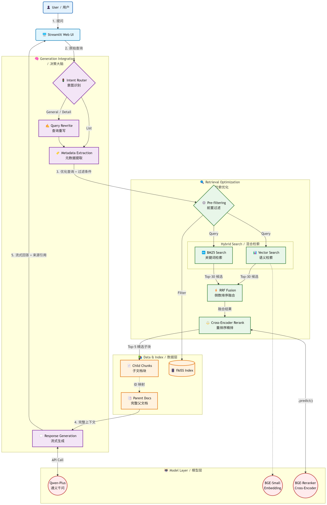 解决方案:我在检索前置位加入了意图路由和查询重写模块,利用 LLM 将模糊的自然语言转化为精准的数据库查询指令。