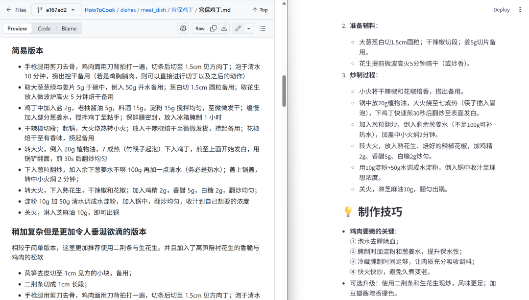 - 上下文的完整性: 文档往往存在复杂的嵌套结构。例如宫保鸡丁的“操作”章节下,分为了“简易版本”和“复杂版本”。如果用户询问“宫保鸡丁怎么做”,系统不能只检索到“简易版本”的中间几行步骤,而遗漏了前置的“必备原料”或者混淆了两个版本的步骤。这要求数据处理环节必须保留文档的逻辑结构,让 AI 理解段落之间的从属关系。