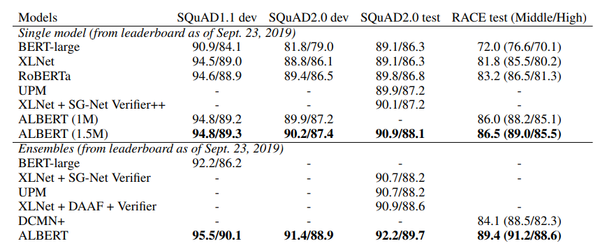 1. 训练时间比BERT(Base)长; 2. 对小数据集优势不明显 |