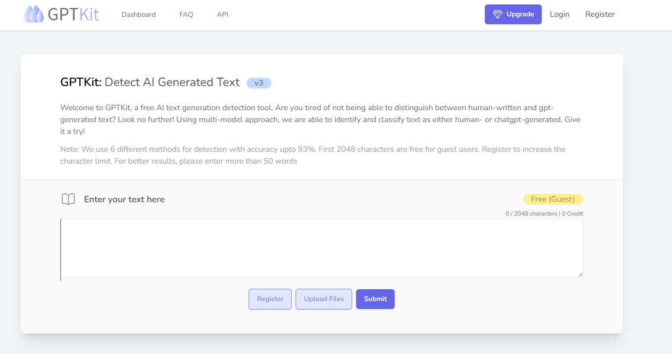 绕过GPTKit英文AI检测已成为许多国际学生、学术工作者和内容创作者的刚需。GPTKit作为新兴AI检测工具,其算法通过分析文本的句式复杂度、词汇重复模式和逻辑连贯性,快速识别AI生成内容。若检测结果过高,可能导致学术质疑或内容降权。本文将深入解析GPTKit的检测逻辑,并提供一套即学即用的解决方案,帮助用户在不违反学术诚信的前提下优化文本原创性。