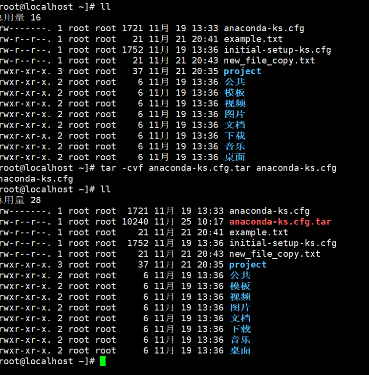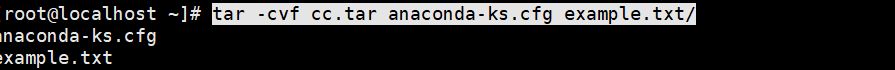 tar -cvf cc.tar anaconda-ks.cfg example.txt/