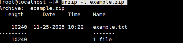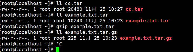 上一步我们已经对example.txt打包了,所以这里直接压缩即可。