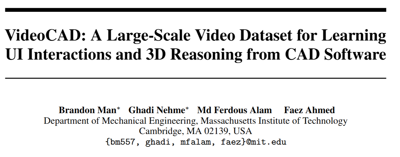 VideoCAD作为首个大规模CAD UI交互与3D推理视频数据集,填补了“CAD智能化”在数据层面的空白。它不仅为AI理解“如何操作CAD软件建模”提供了数据支撑,更打开了“3D推理+UI交互”交叉研究的新方向。