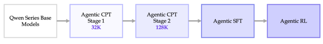 如同大部分推理模型的训练,Tongyi DeepResearch的模型研发,大致上包含以下三个阶段。冷知识:当一个人类,需要描述一个复杂过程,他/她往往会说:3个阶段。你知道的,这很难解释为什么他们需要十根手指。