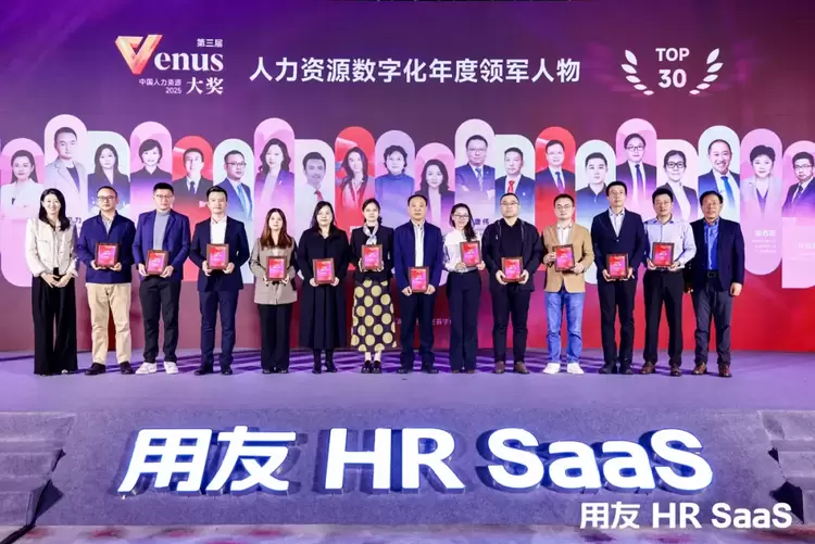 2025中国人力资源Venus大奖由用友HR SaaS联合HR SPACE主办,评审委员会历经严格遴选,最终颁发了「2025HR数字化转型最佳实践奖」、「2025AI+HR实践先锋奖」、「2025雇主品牌经营典范奖」、「2025出海人力资源管理领航奖」、「2025人力资源数字化年度领军人物」五大奖项,并在活动现场正式公布获奖榜单。