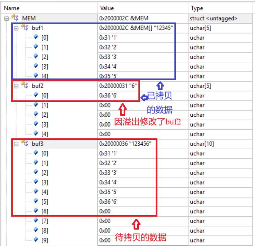 strcpy(MEM.buf1,MEM.buf3); //将buf3[]中的字符串拷贝到buf1[]中