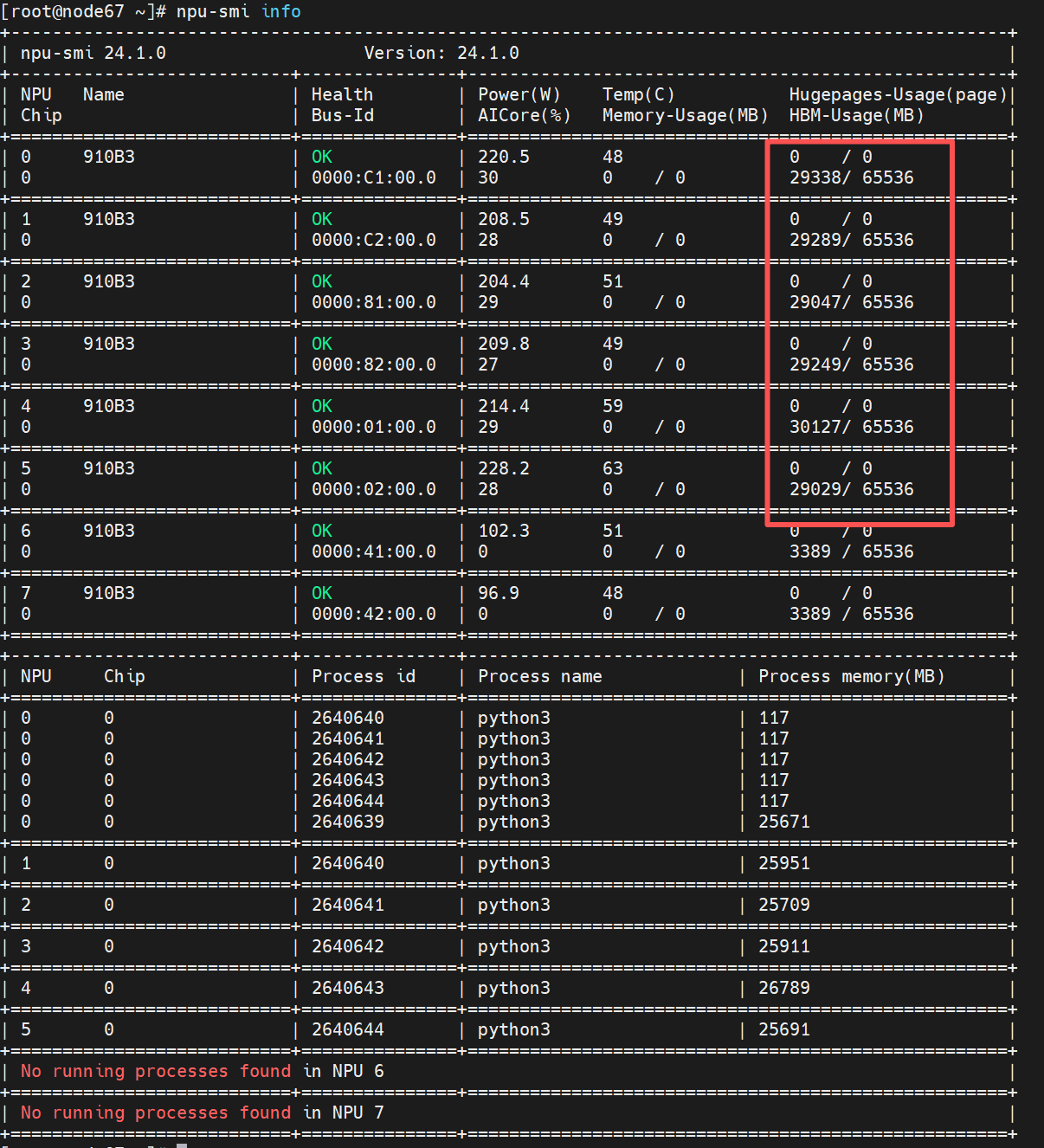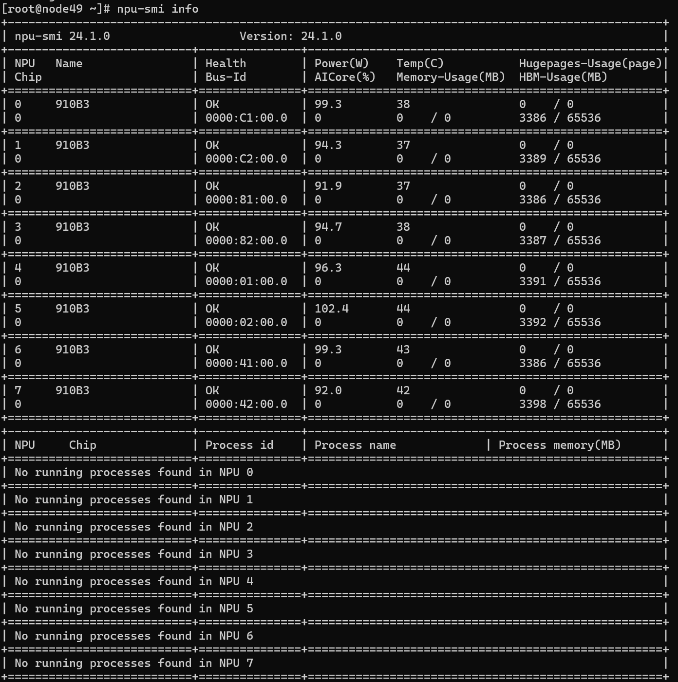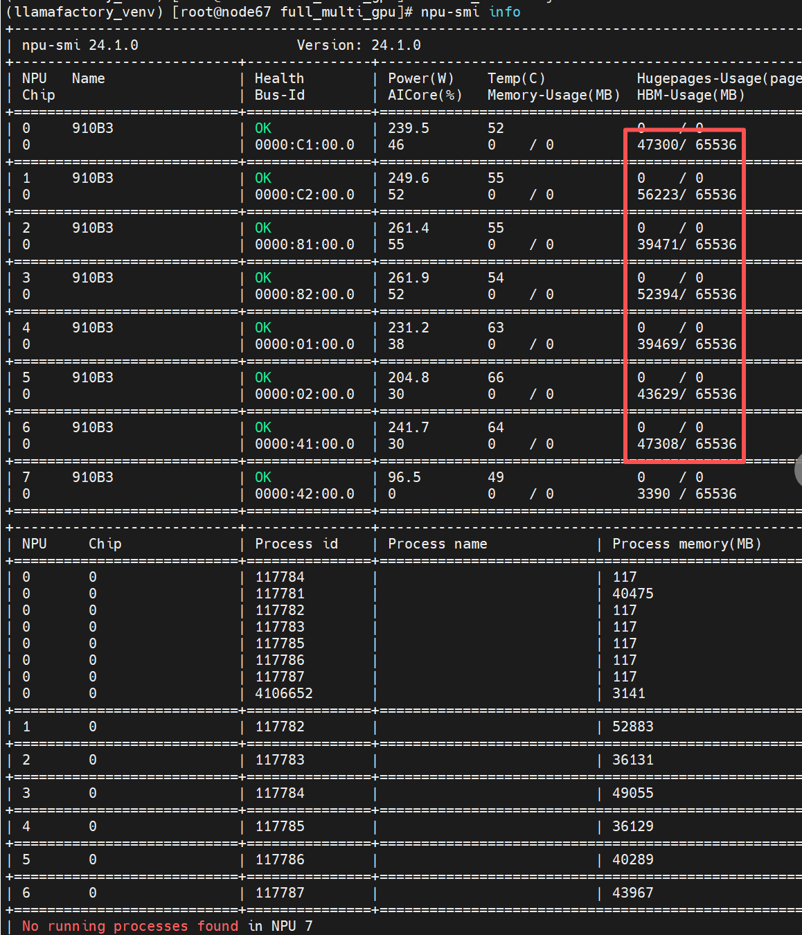 说人话,就是可以训32B,72B,甚至极限可能是120B的模型,当然我们现在不考虑这些情况,就只要知道训32B是错错有余就行了。下面就是我加了deepseed之后训练32B时候npu的状态: