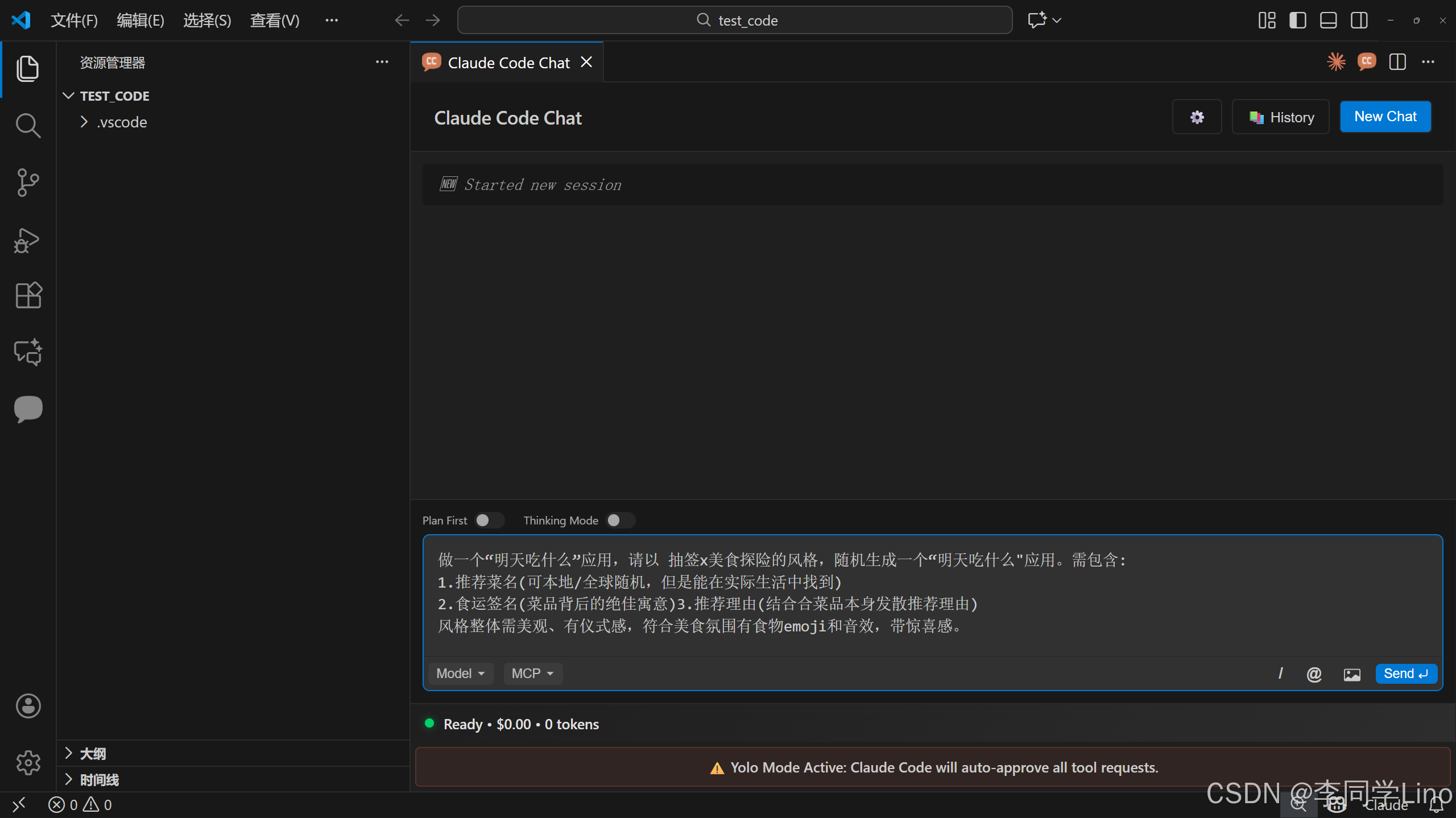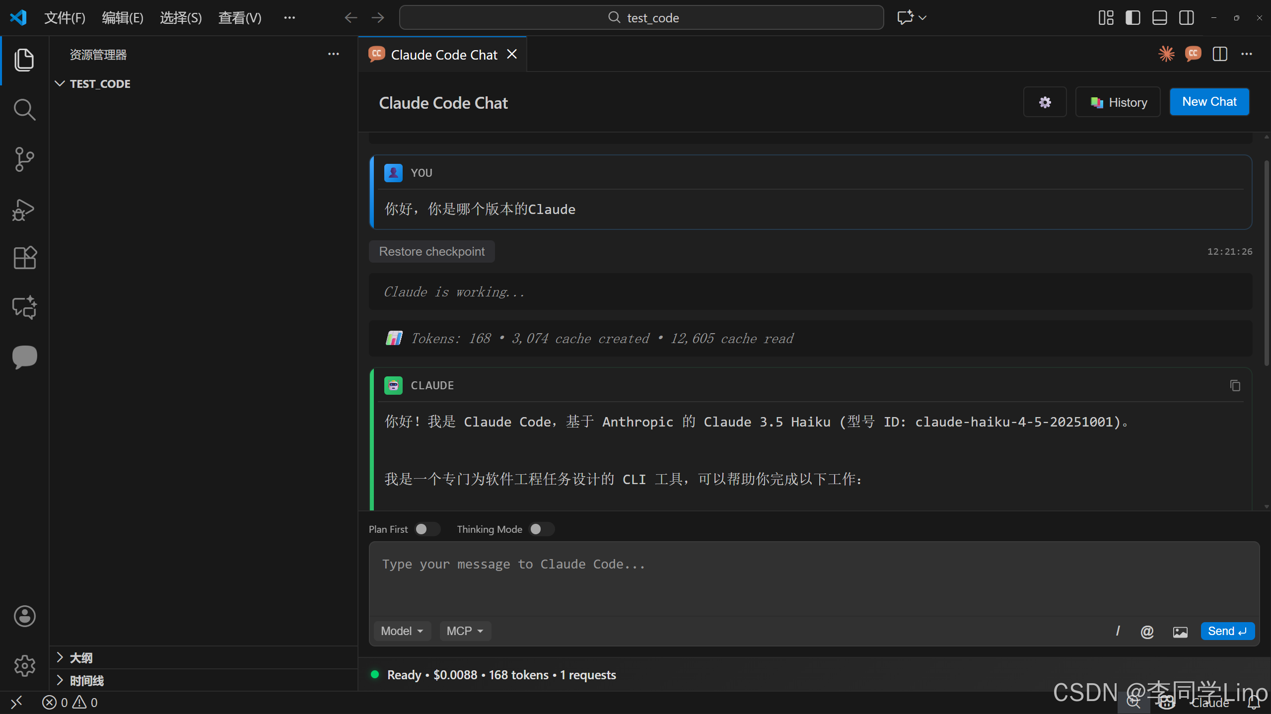 打开Claude Code Chat,根据上面已经配置好的Claude Code,这里就可以直接用了。是不是非常方便哈哈哈。